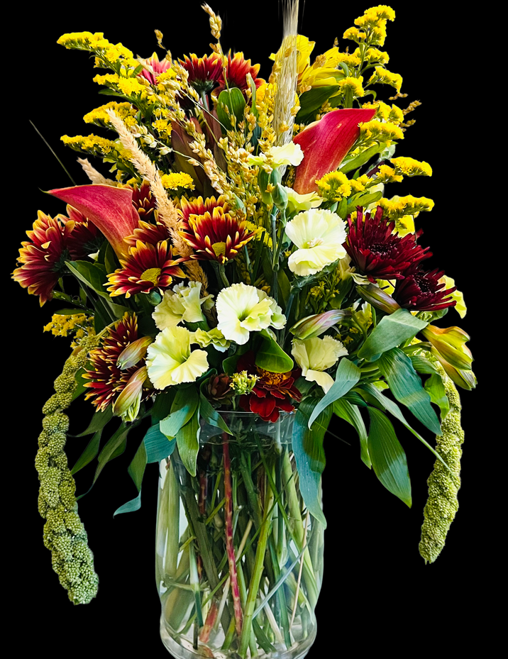 A $65 minimum applies to all orders. Floral arrangements can be personalized to any budget above that. Every arrangement is uniquely crafted with care and creativity using a mix of the freshest flowers and fillers, available in your choice of front-facing or rounded style. Contact me with your budget and I’ll create something beautiful just for you!